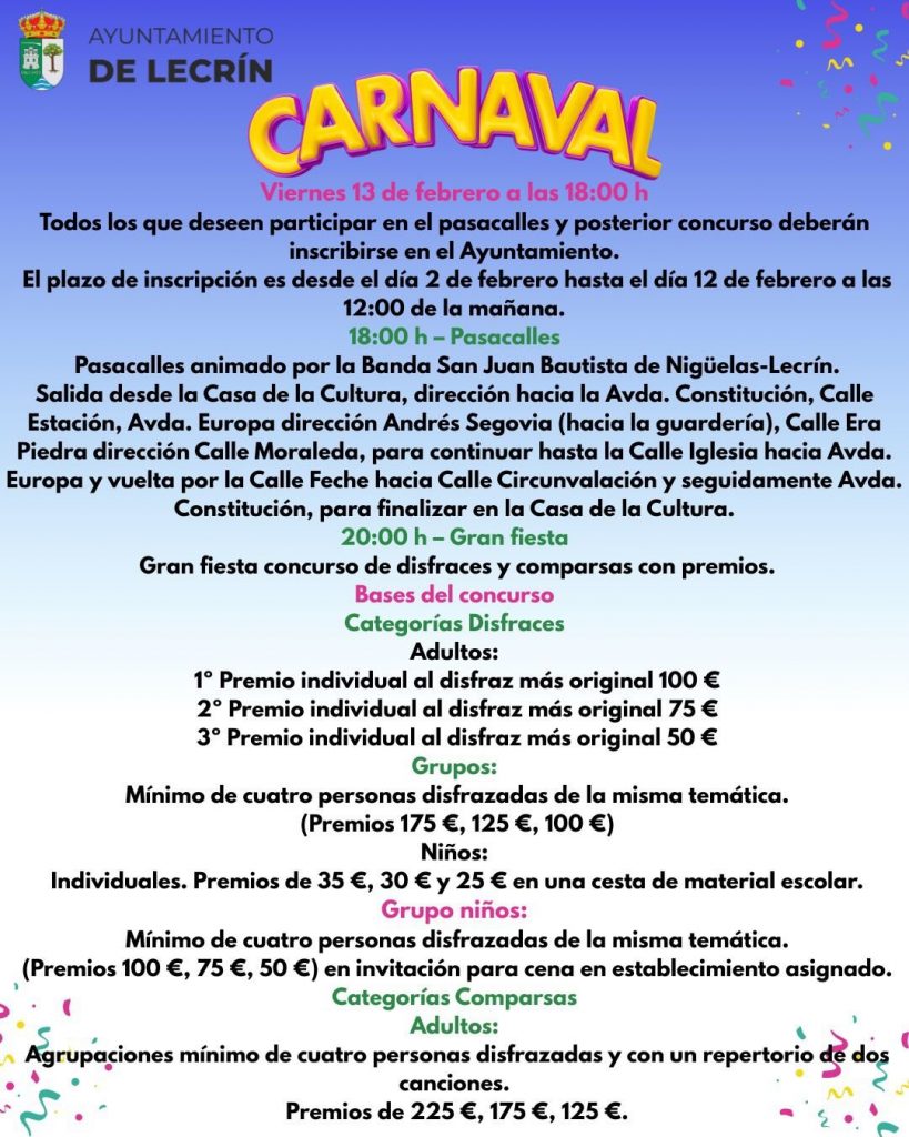 • Gran fiesta concurso de disfraces y comparsas con premios.