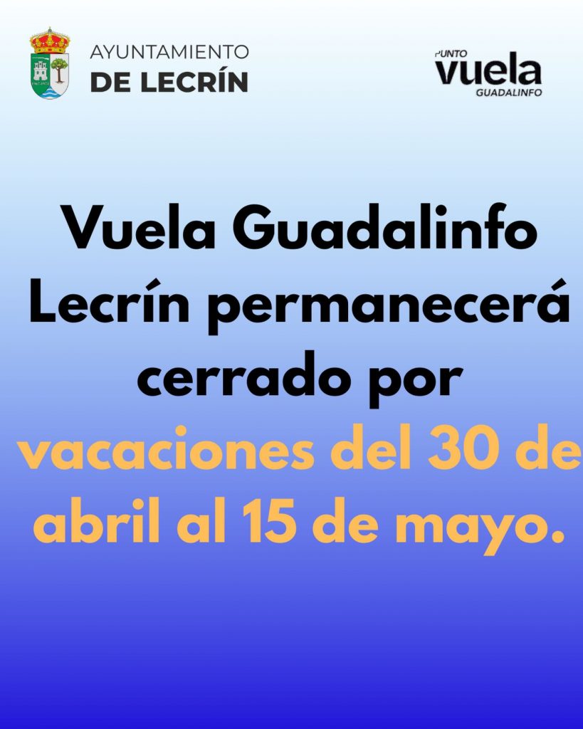 Del 30 de abril al 15 de mayo Vuela Lecrín estará cerrado por vacaciones.